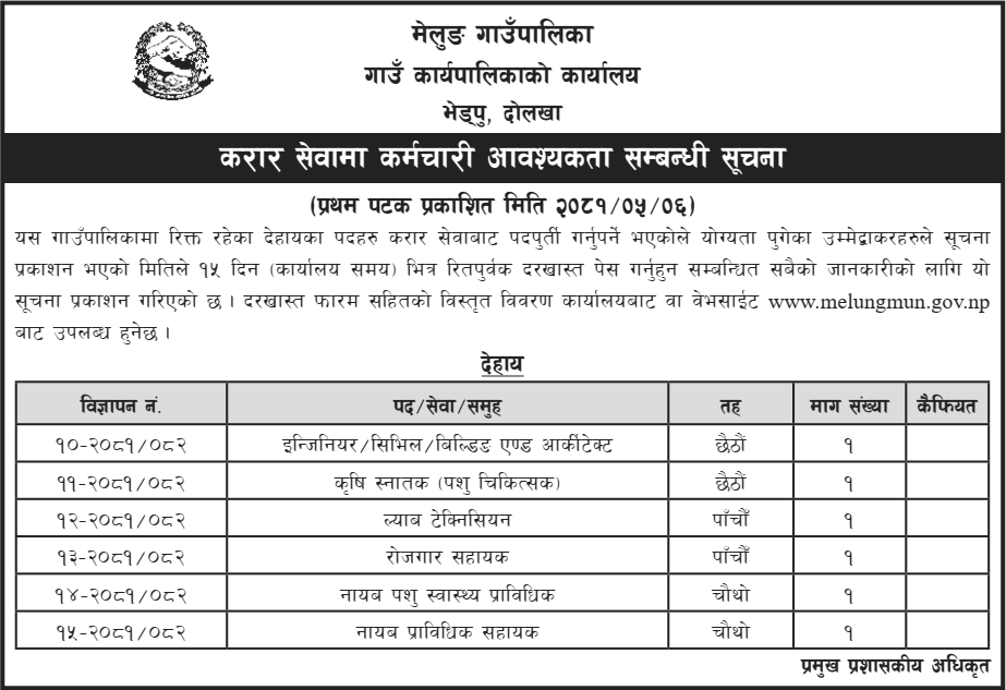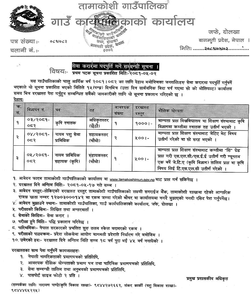 Last Date for Application Submission: 2081/05/14 within office hours. If the day falls on a public holiday, the deadline will be extended to the next working day within office hours.